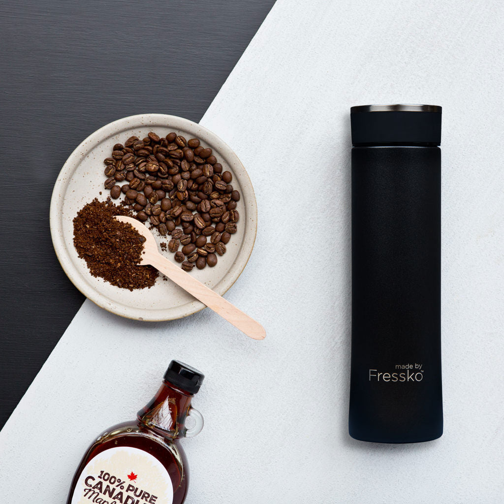 Remove from fridge and strain into your flask using the top tea infuser attachment to sieve or catch any ground coffee as you pour.