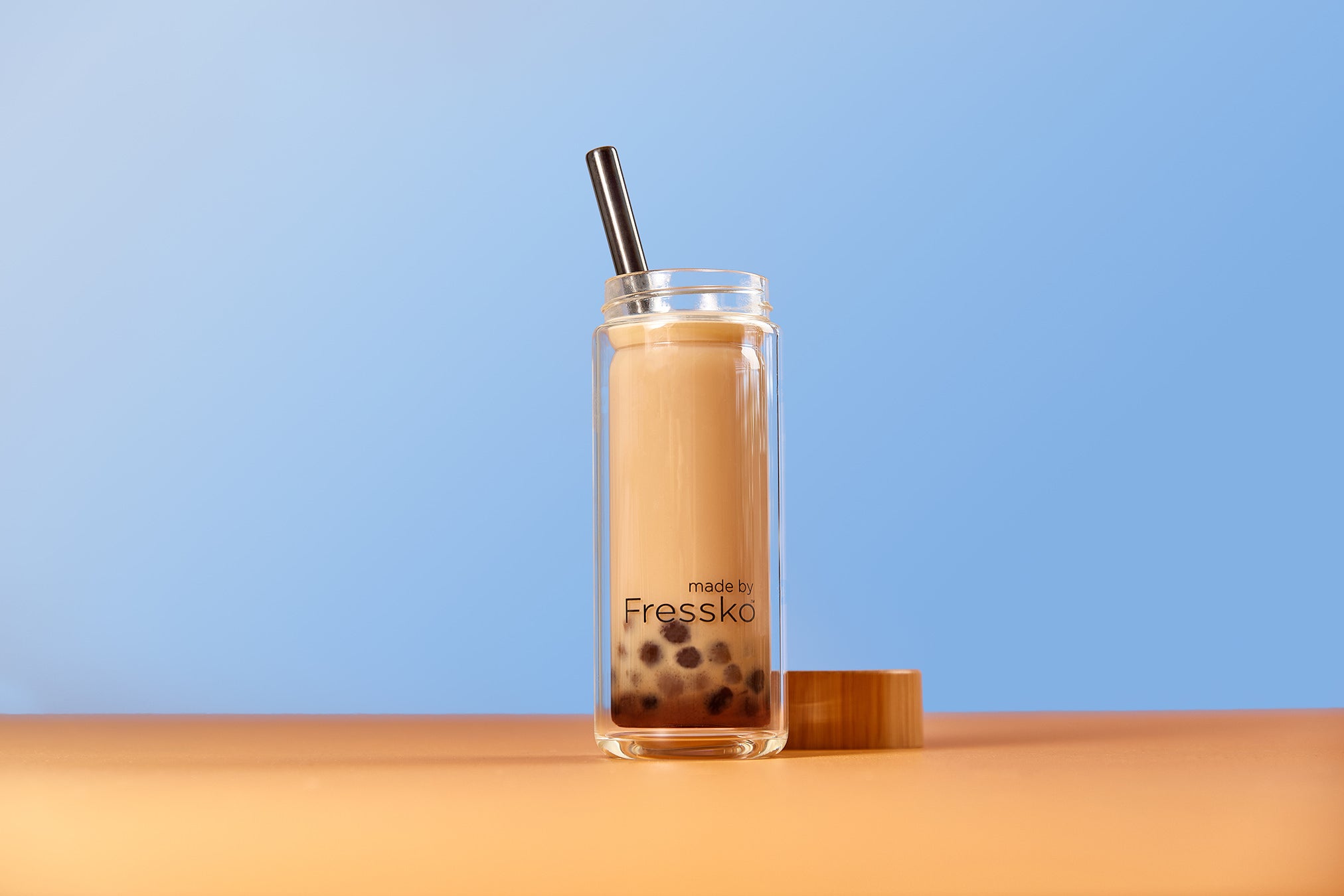 - Divide the pearl/sugar mix into two Fressko flasks. Add a few ice cubes followed by 3/4 cup of tea mix.