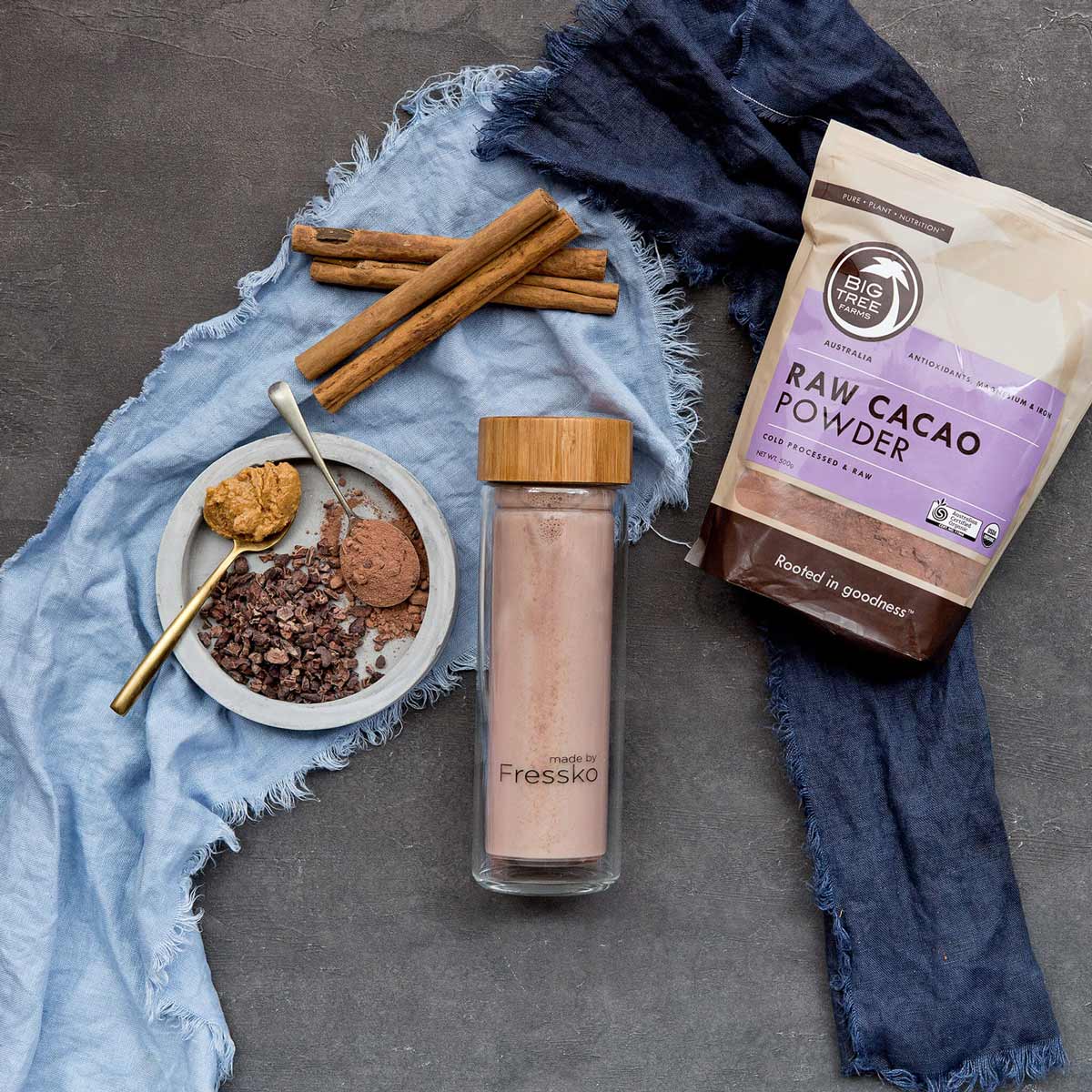 Blend all ingredients (except cacao nibs) in a blender or food processor until smooth.
