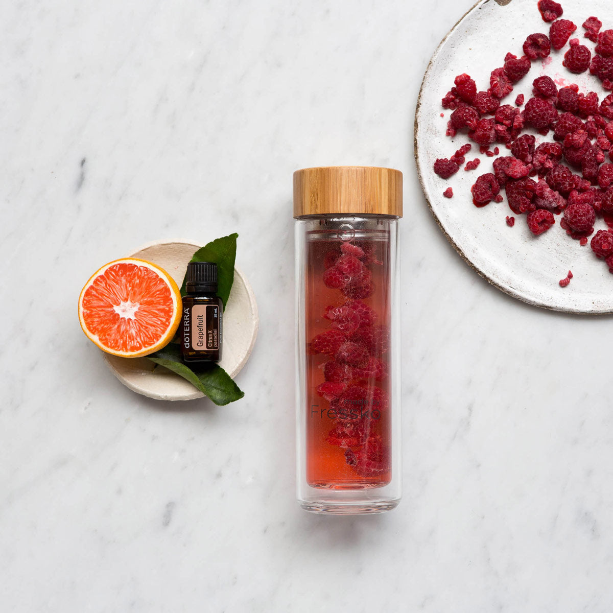 Frozen Raspberry + Doterra Grapefruit Oil Water