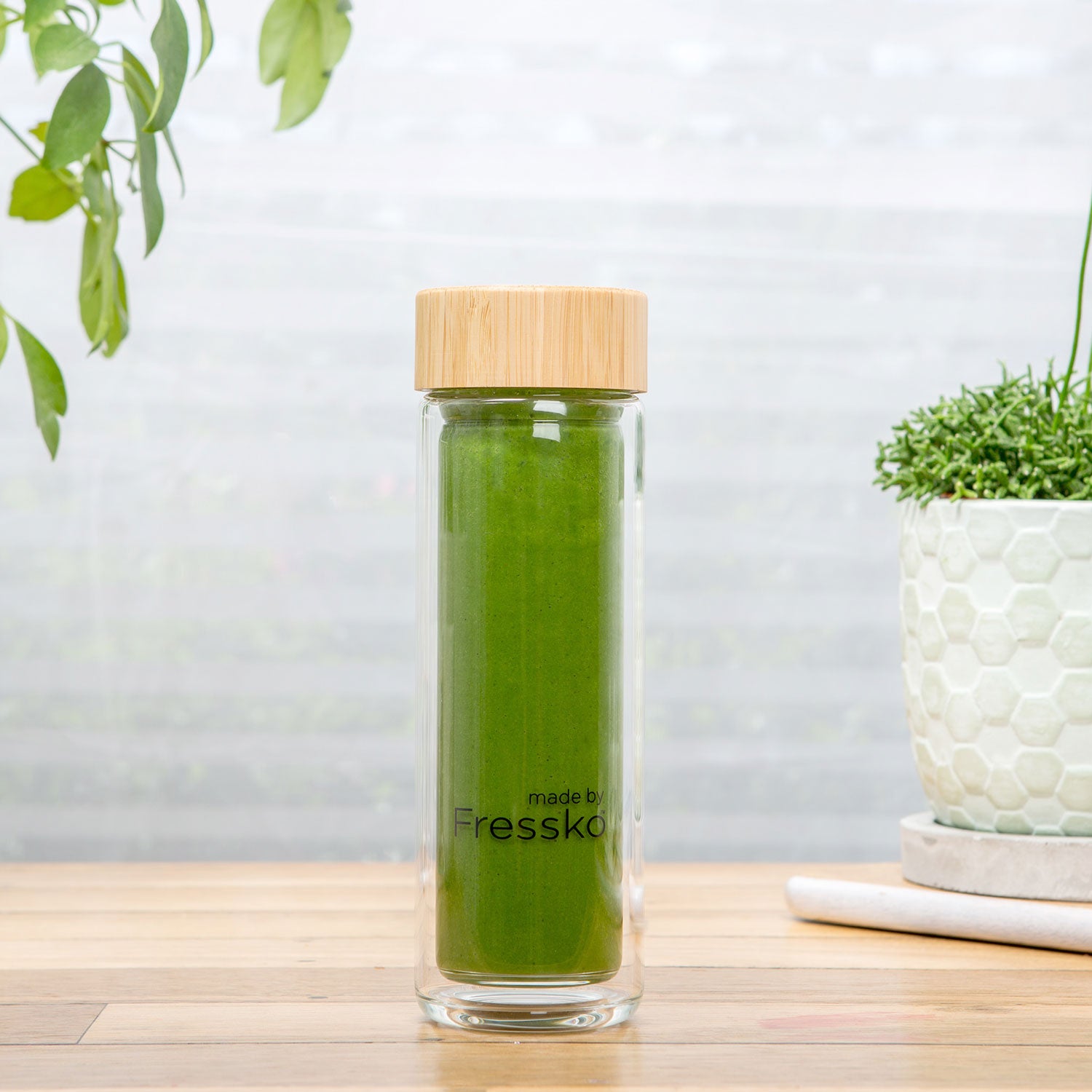 Add filtered water until smoothie is desired thinness and pour into your flask. Enjoy!