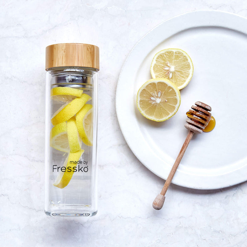 Use top attachment of tea infuser to hold in lemon as you drink.