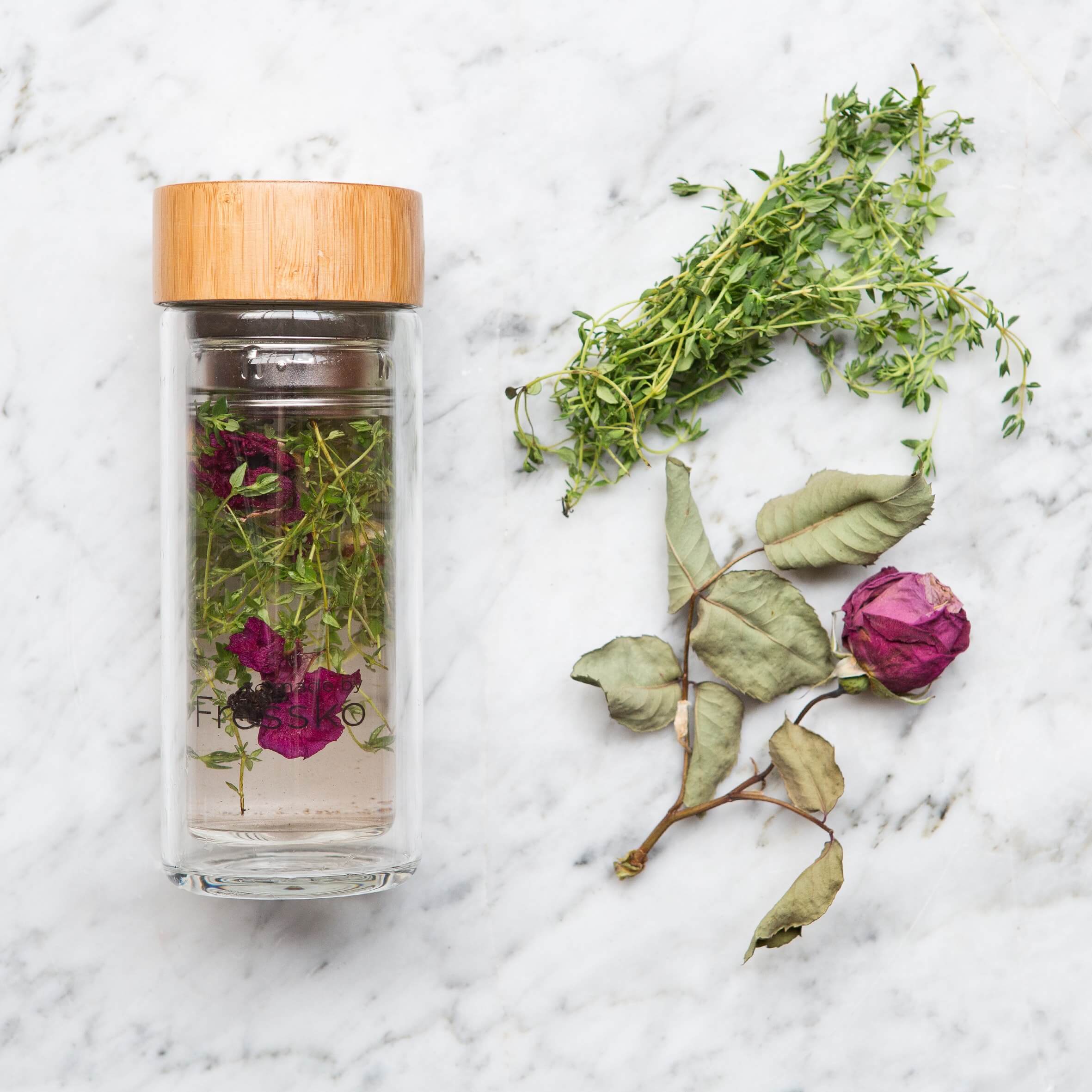 Add rose and thyme ( and honey, if using ) to RISE flask.