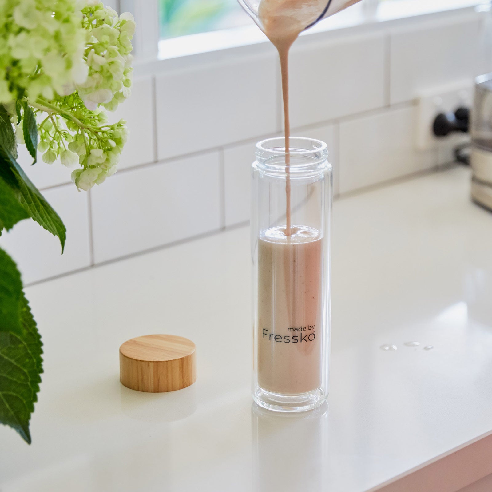 Add to flask, top with almond milk if flask is not filled to top.