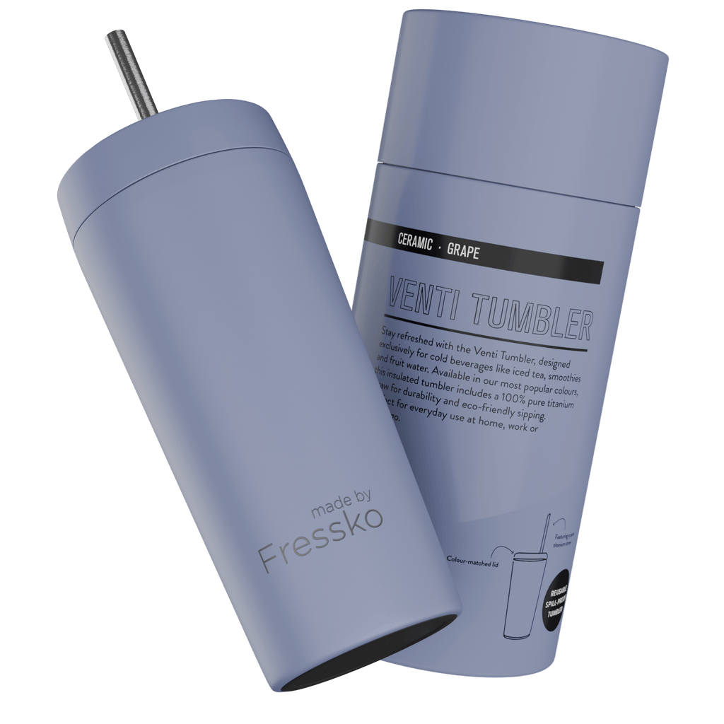 Sip long with the Venti Tumbler, designed exclusively for cold beverages like iced tea, smoothies, and fruit water. Available in eight popular colours, this insulated tumbler in grape includes a 100% pure titanium straw for durability and eco-friendly sipping. Perfect for everyday use at home, work, or on the go.