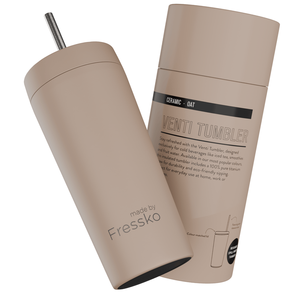 Sip long with the Venti Tumbler, designed exclusively for cold beverages like iced tea, smoothies, and fruit water. Available in eight popular colours, this insulated tumbler in oat includes a 100% pure titanium straw for durability and eco-friendly sipping. Perfect for everyday use at home, work, or on the go.
